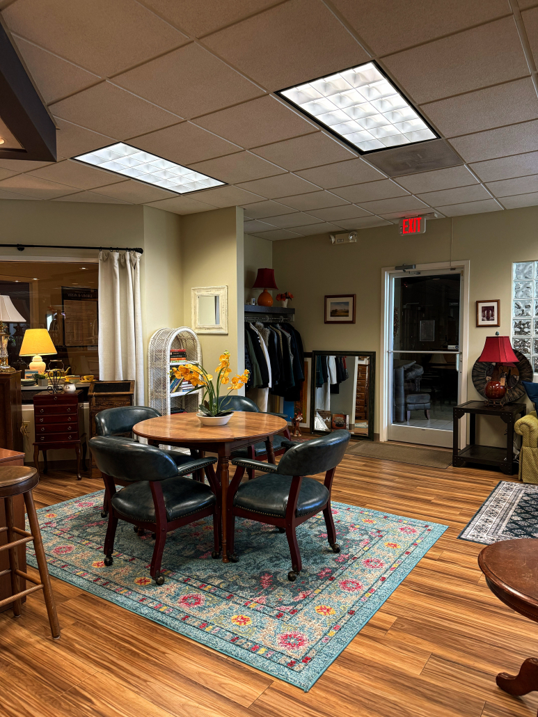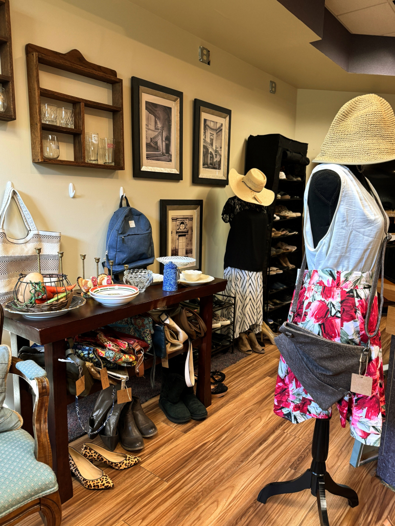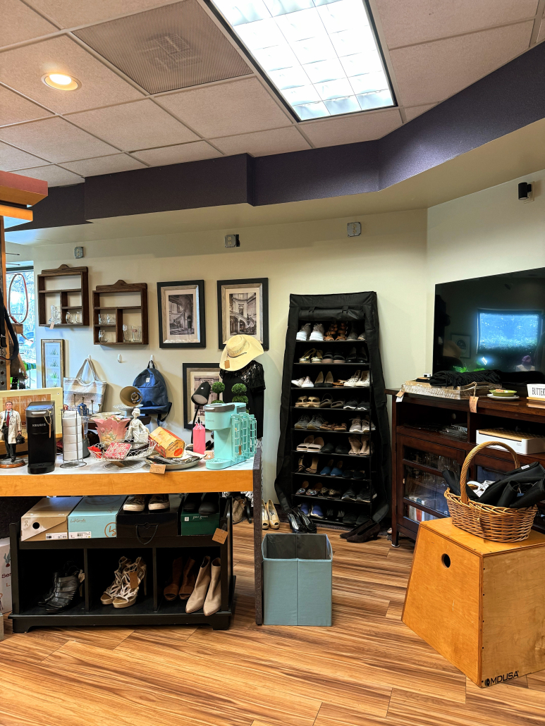 Feel free to drop off anytime Tuesday – Saturday 10-5, Sunday 12-5 and Mondays or evenings by appointment. Once you arrive, please visit the spa for assistance as there might not be anyone in the thrift store yet.